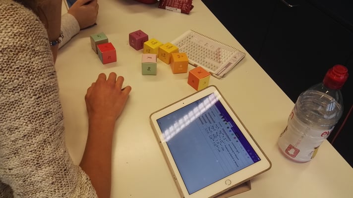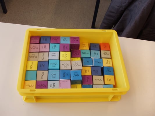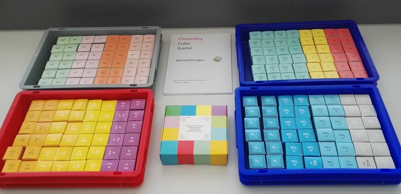 Die erste Version des ChemCubes entstand in Handarbeit. Ein Klasse mit 20 Schülerinnen und Schülern produzierten in 2 Lektionen etwa 80 Würfel aus einem festen Papier.